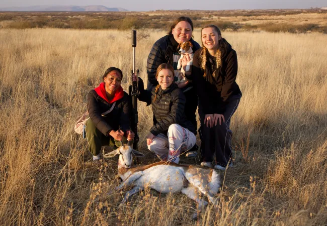Only trophy game prices vary, ensuring transparent and fair rates for all guests. We provide assisted game-drive hunting at N$1 200 per day per vehicle, shared among all guests. Alternatively, guests can choose the excitement and challenge of still hunting on foot.